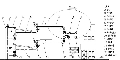 答案:鶴管由立柱、旋轉接頭、內臂、外臂、氣相管、垂管、彈簧缸平衡系統、導靜電裝置、真空短路裝置組成
